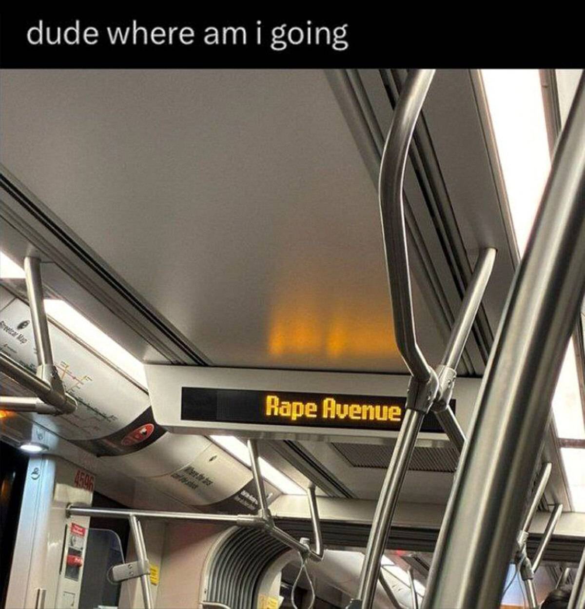 Caption: "dude where am i going Rape Avenue"