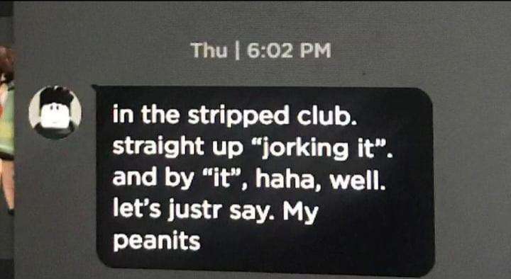 Caption: "in the stripped club. straight up "jorking it". and by "it", haha, well. let's justr say. My peanits"
