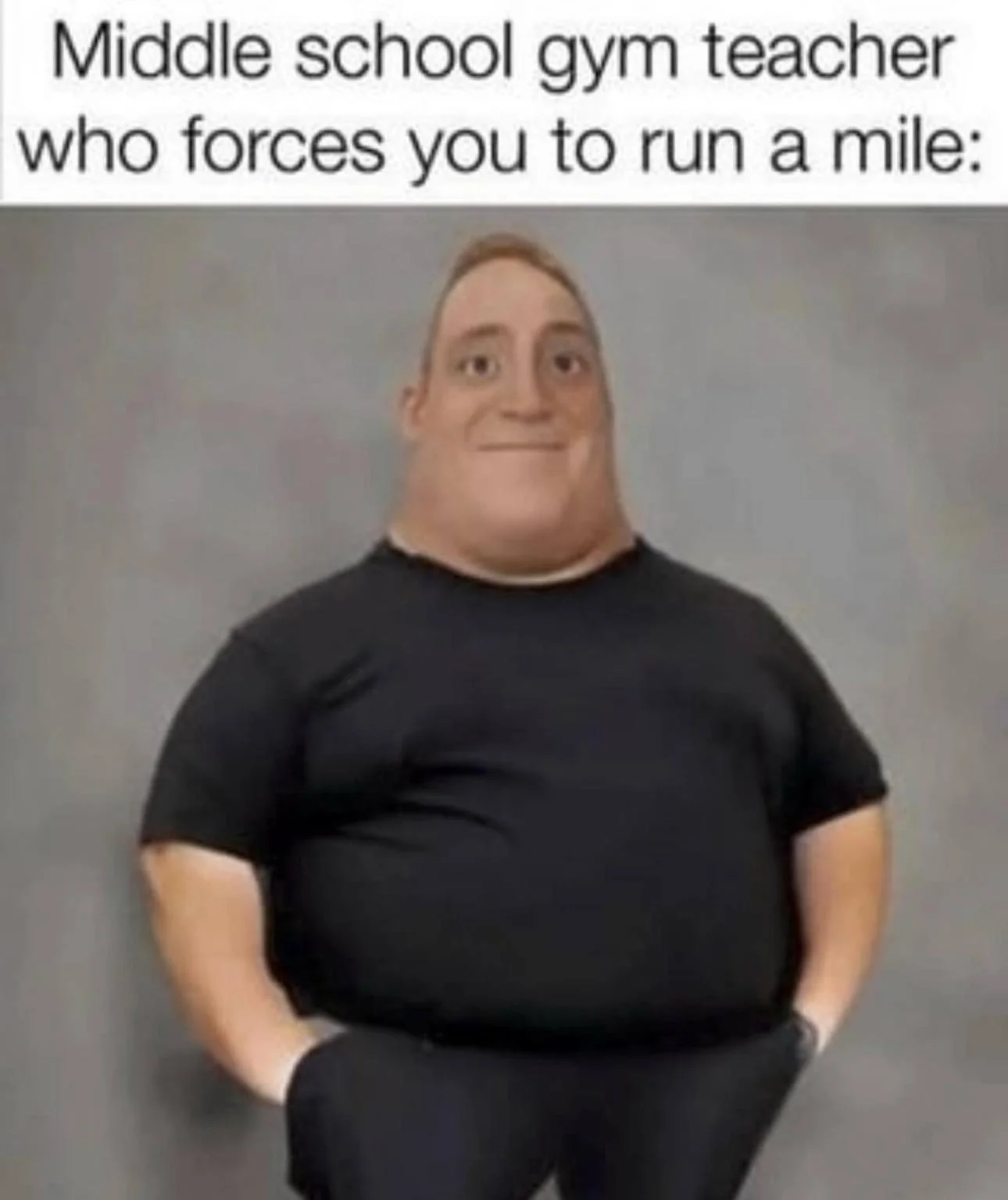 Caption: "Middle school gym teacher who forces you to run a mile:"