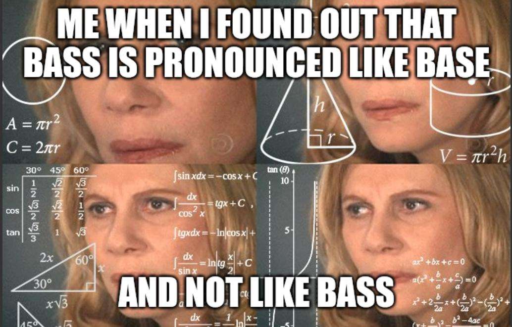 Caption: "Me when I found out that bass is pronounced like base and not like bass"