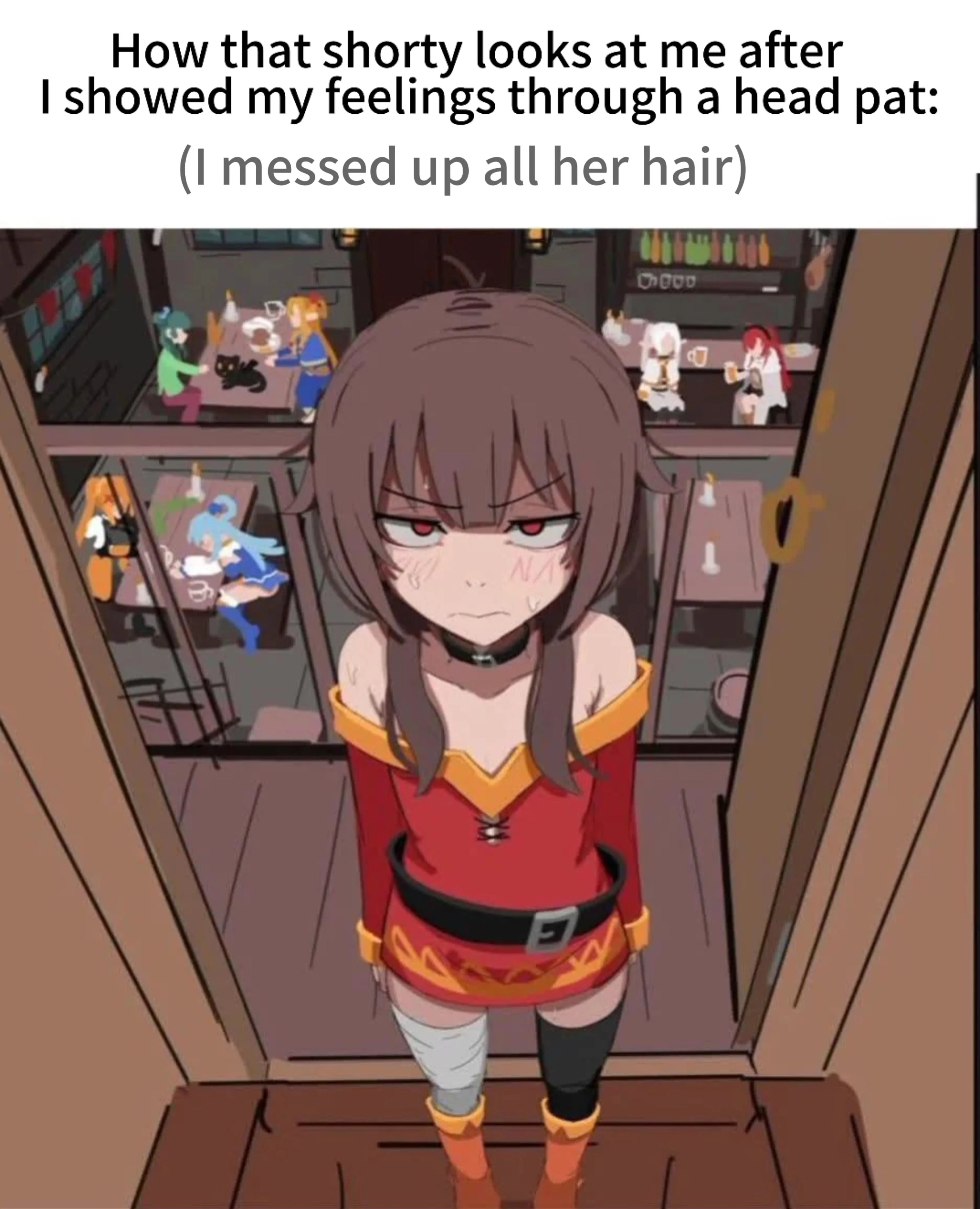 Caption: "How that shorty looks at me after I showed my feelings through a head pat (I messed up all her hair)"