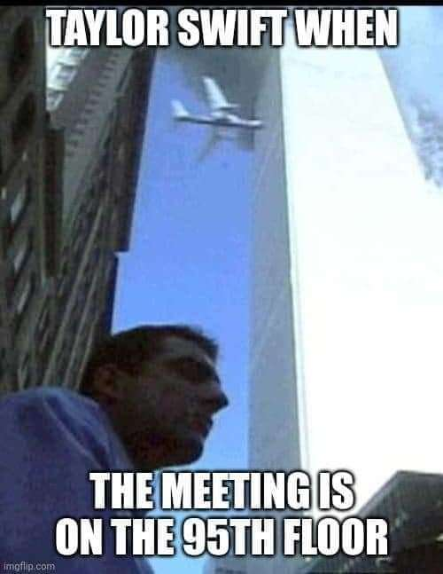 Caption: "Taylor Swift when the meeting is on the 95th floor"