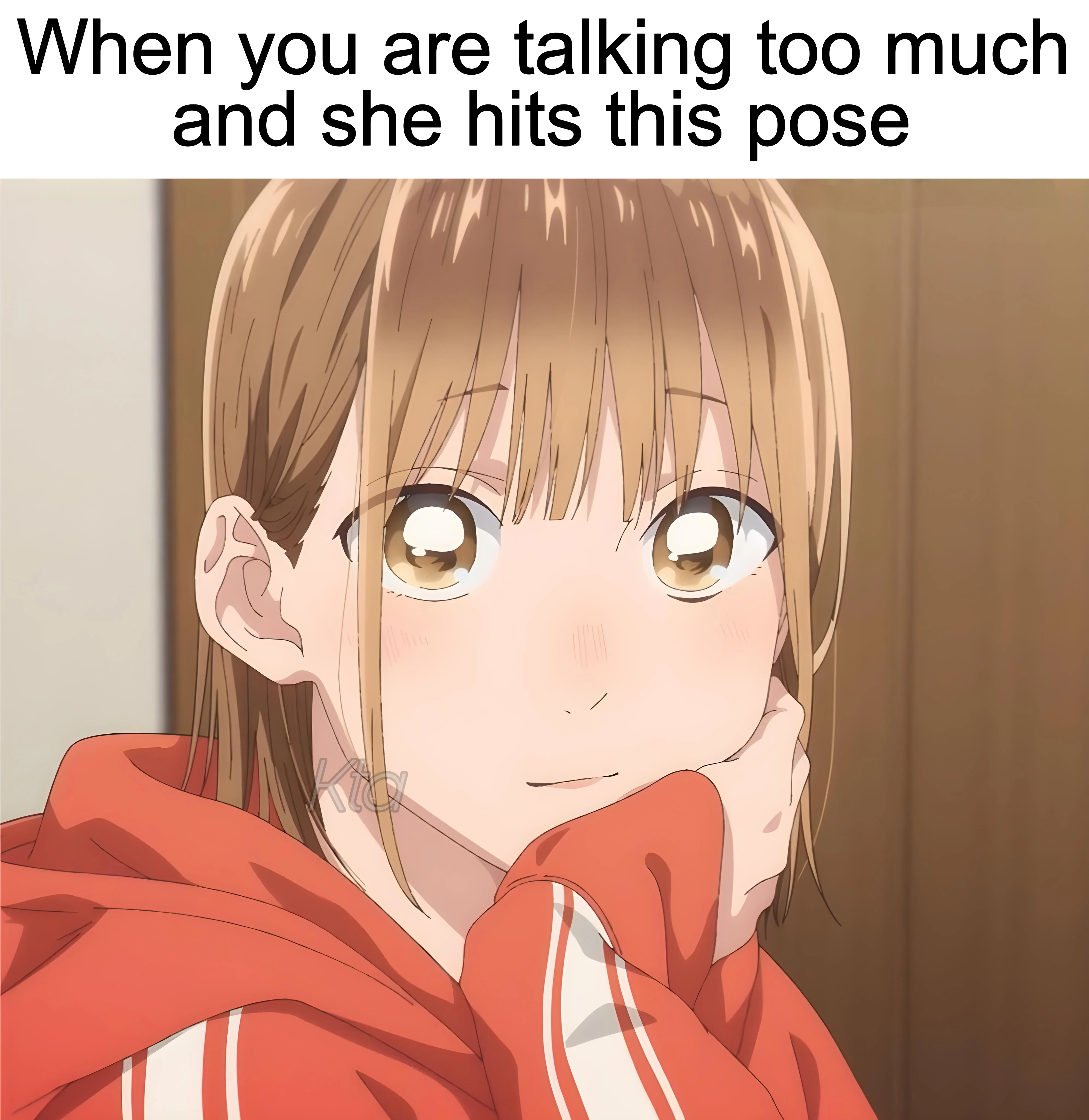 Caption: "When you are talking too much and she hits this pose"