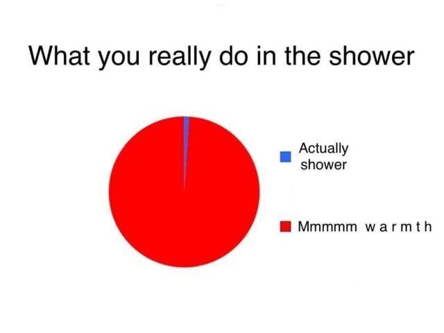 Caption: "What you really do in the shower 2% - Actually shower 98% - Mmmmm w a r m t h"