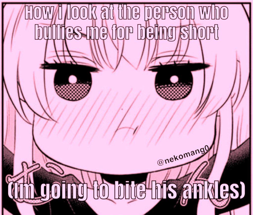 Caption: "How i look at the person who bullies me for being short (Im going to bite his ankles)"
