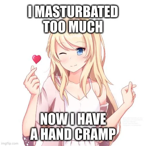 Caption: "I masturbated too much Now I have a hand cramp"