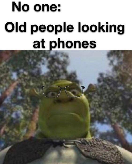 Caption: "No one - Old people looking at phones"