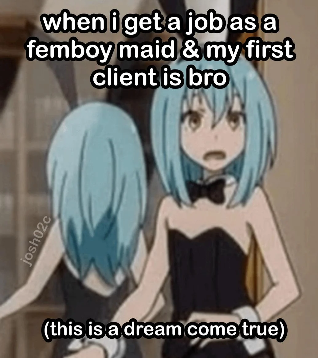 Caption: "when i get a job as a femboy maid & my first client is bro"