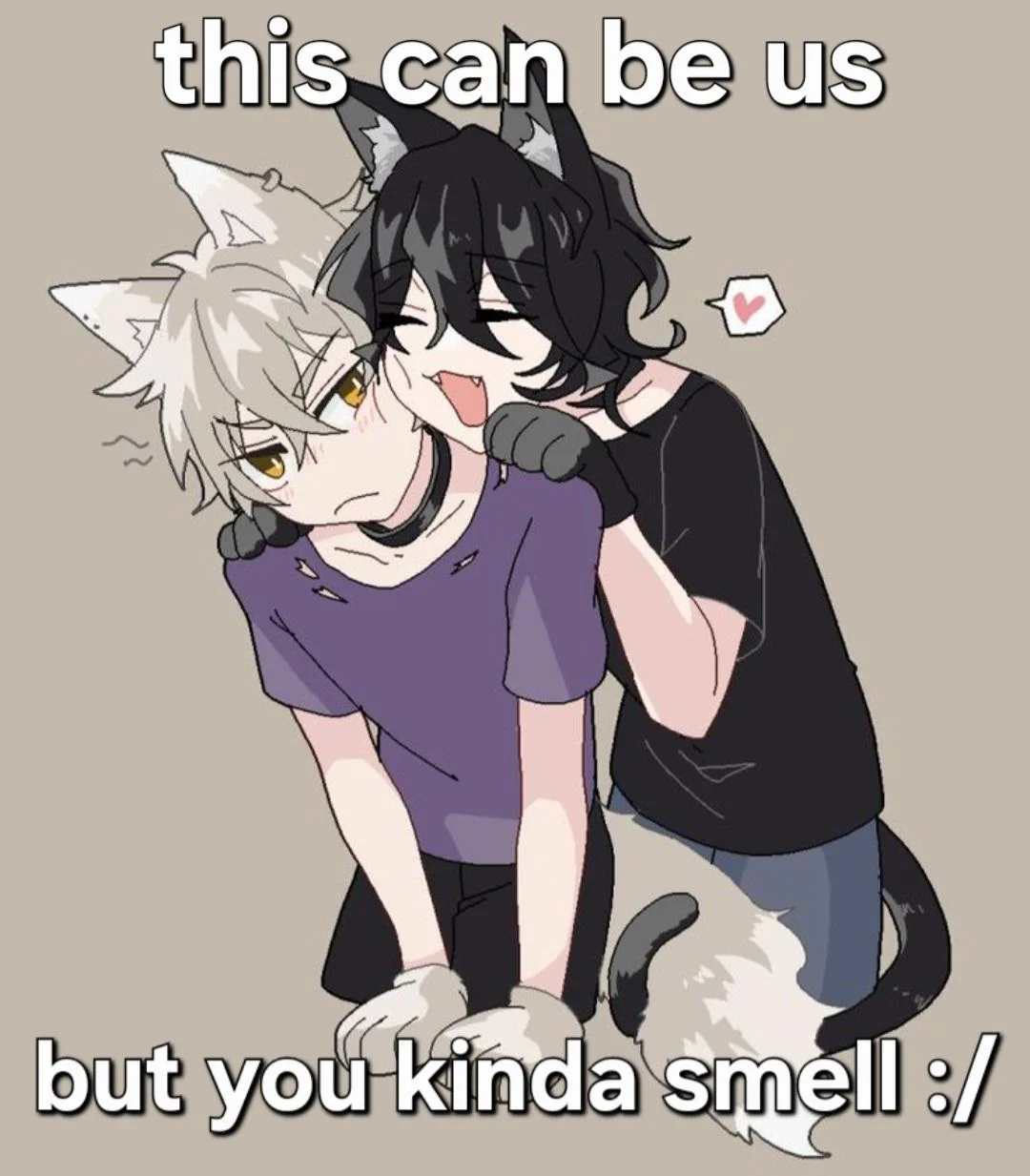 Caption: "this can be us but you kinda smell :/"