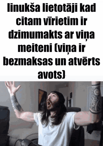 Caption: "linukša lietotāji kad citam vīrietim ir dzimumakts ar viņa meiteni (viņa ir bezmaksas un atvērts avots)"
