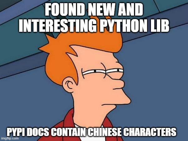 Caption: "Found new and interesting Python lib Pypi docs contain Chinese characters"