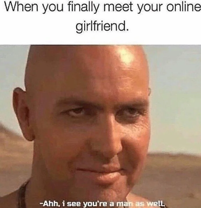 Caption: "When you finally meet your online girlfriend. Ahh, I see you're a man as well."