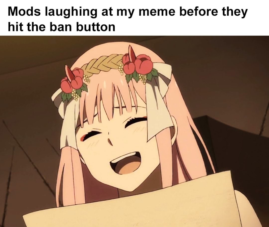Caption: "Mods laughing at my meme before they hit the ban button"