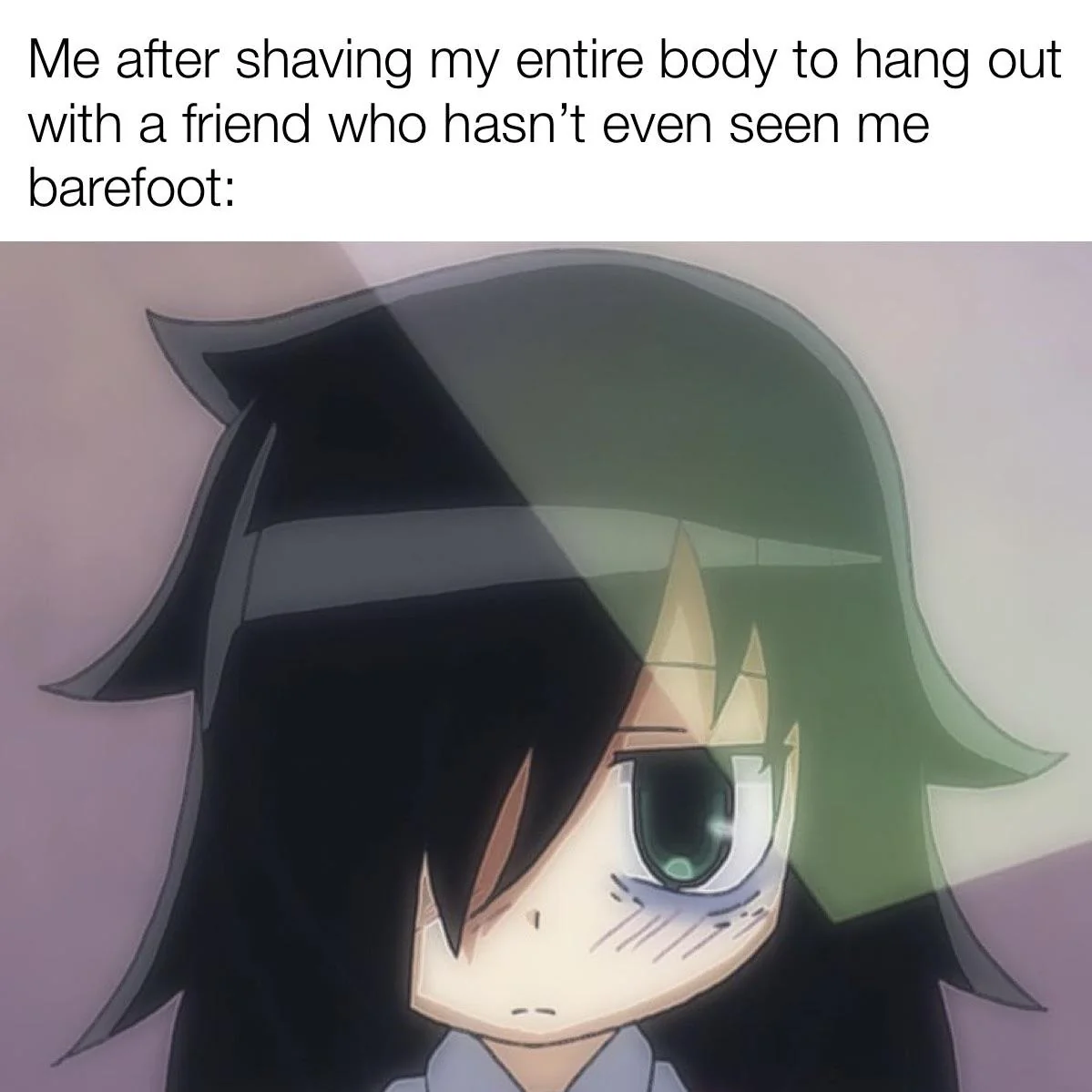 Caption: "Me after shaving my entire body to hang out with a friend who hasn't even seen me barefoot:"