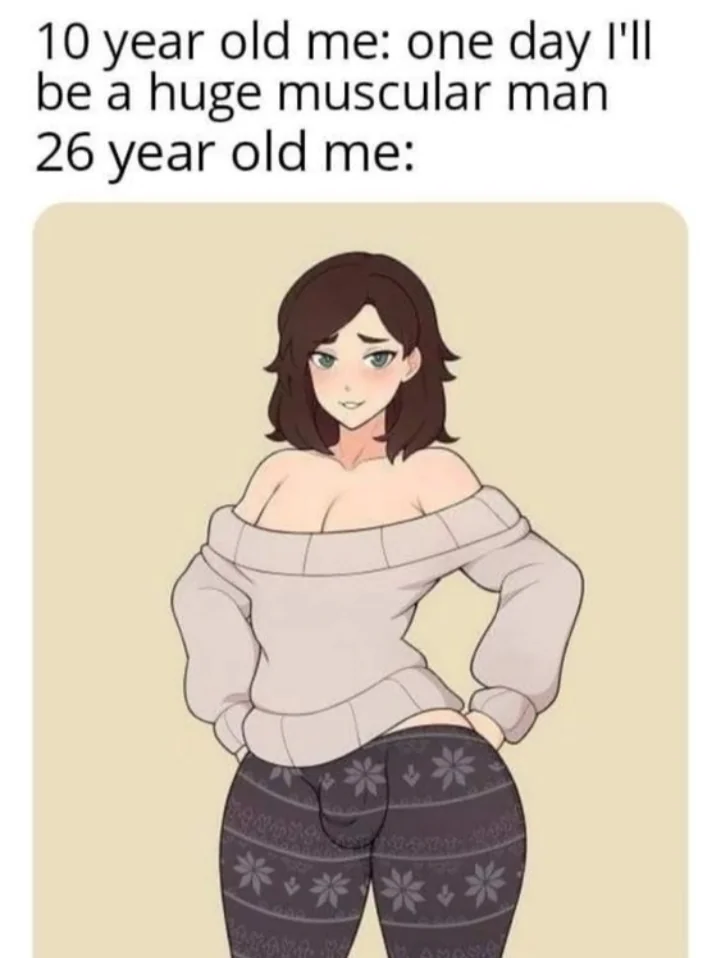 Caption: "10 year old me: one day I'll be a huge muscular man 26 year old me:"