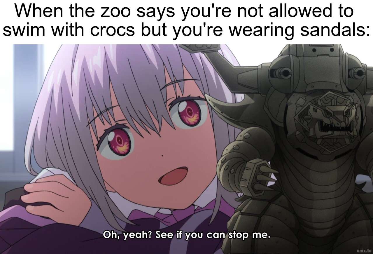 Caption: "When the zoo says you're not allowed to swim with crocs but you're wearing sandals: Oh, yeah? See if you can stop me."