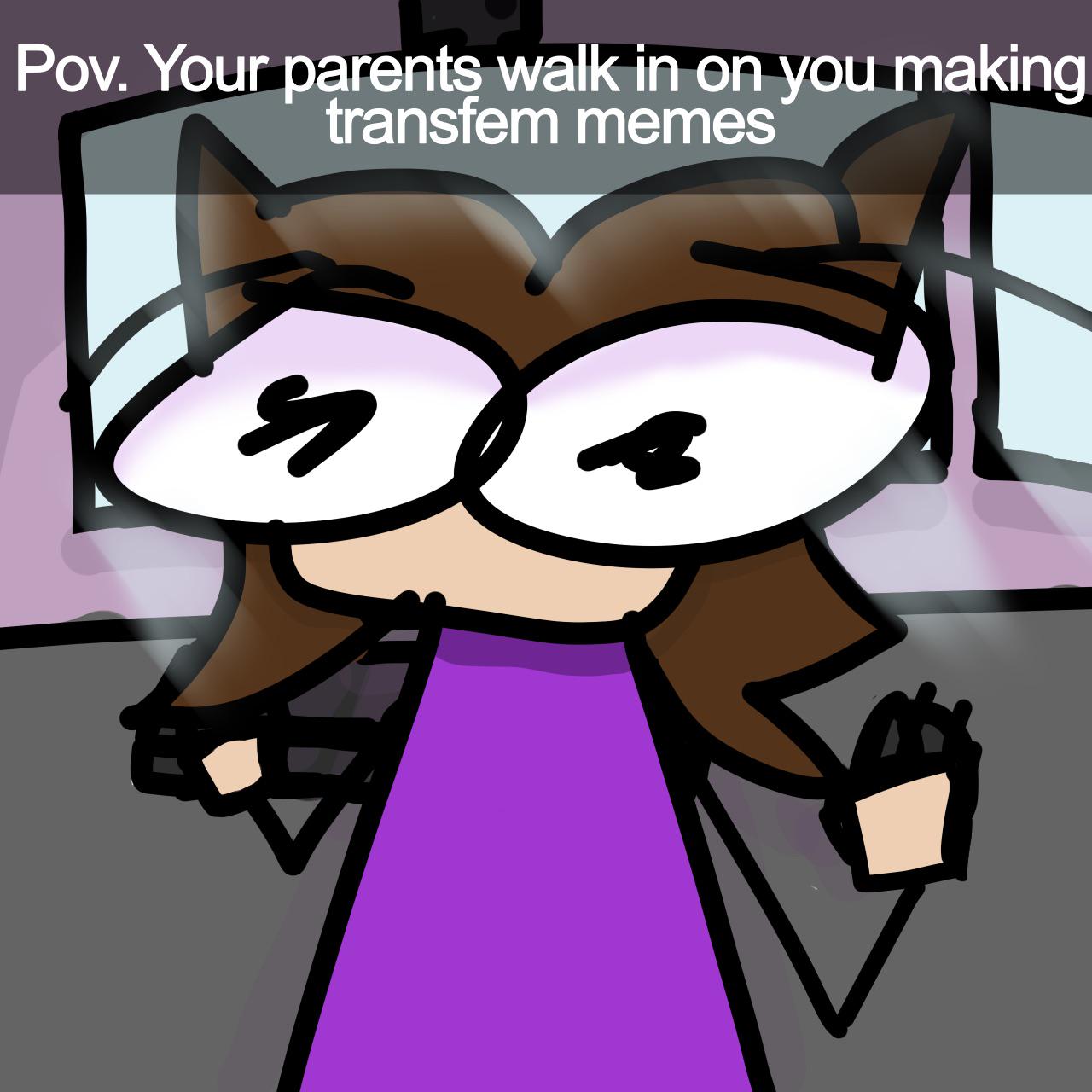 Caption: "Pov. Your parents walk in on you making transfem memes"