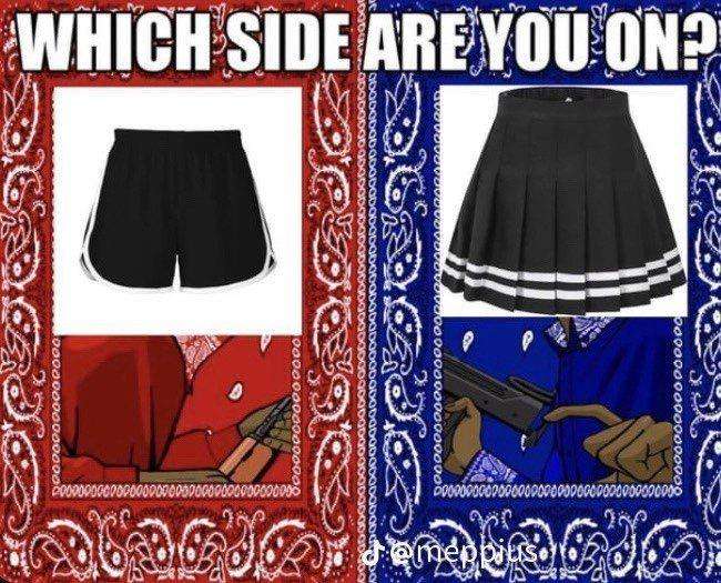 Caption: "Which side are you on? Dolphin shorts - Pleated skirt"