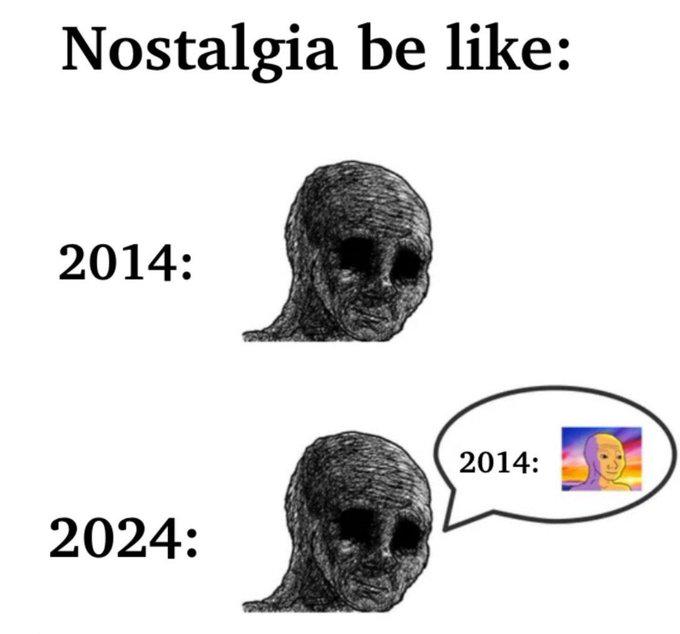 Caption: "Nostalgia be like: 2014: 2024: (2014)"