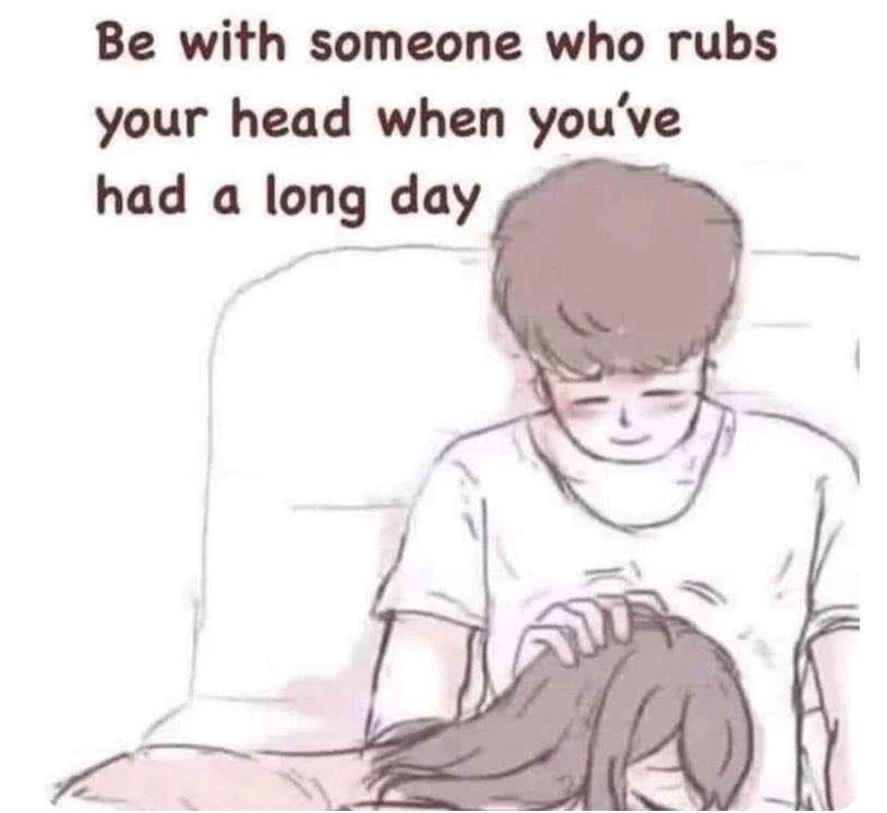 Caption: "Be with someone who rubs your head when you've had a long day"