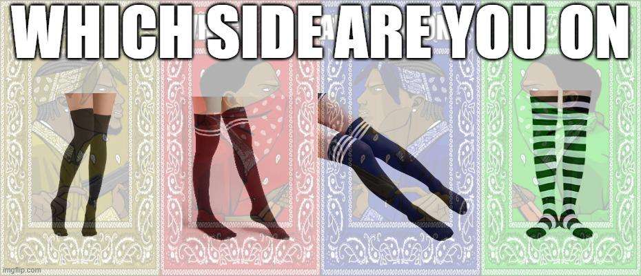 Caption: "Which side are you on Single color socks - Socks with two upper stripes - Socks with three upper stripes - Fully stripped out socks"
