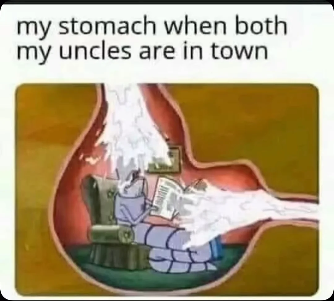 Caption: "my stomach when both my uncles are in town"