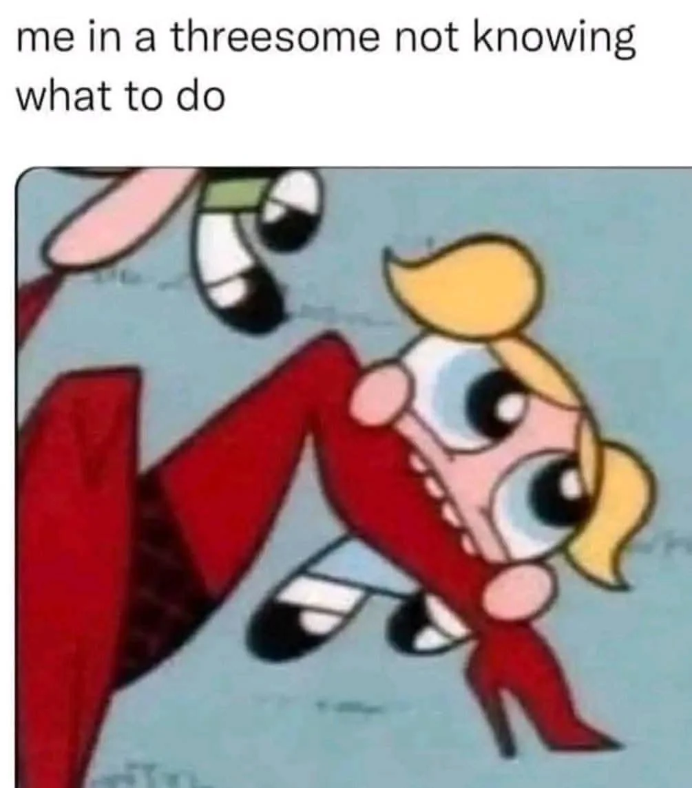 Caption: "me in a threesome not knowing what to do"