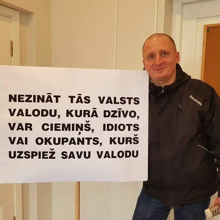 Caption: "Nezināt tās valsts valodu, kurā dzīvo, var ciemiņš, idiots vai okupants, kurš uzspiež savu valodu"
