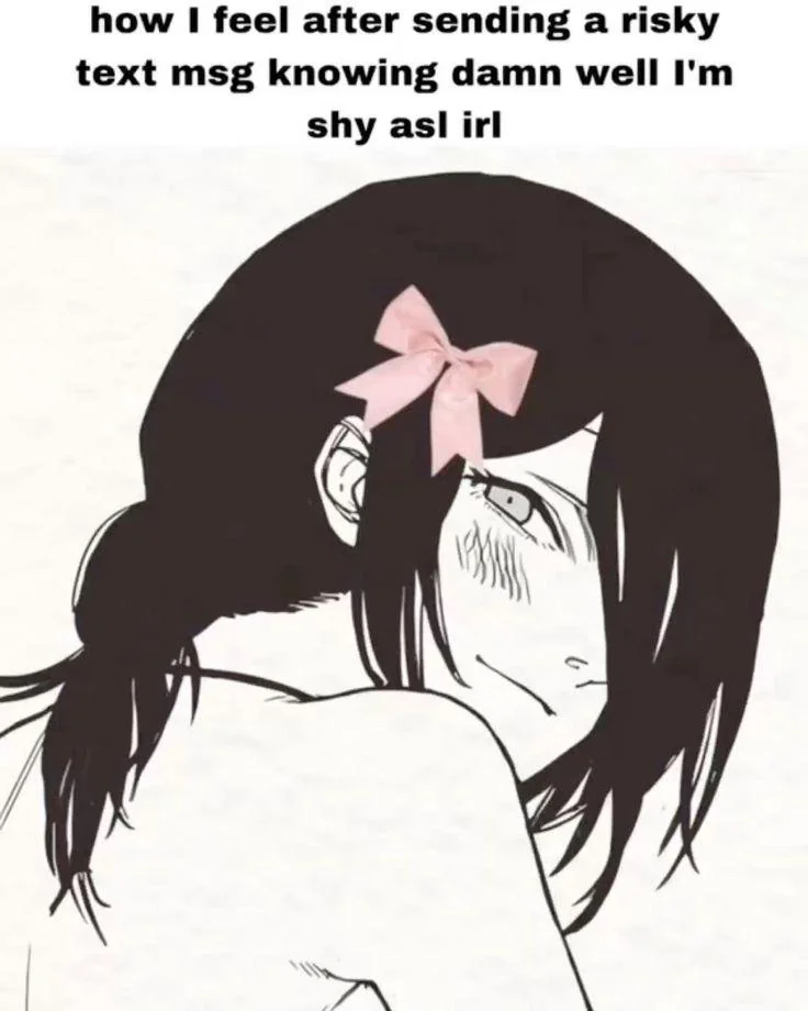 Caption: "how I feel after sending a risky text msg knowing damn well I'm shy asl irl"
