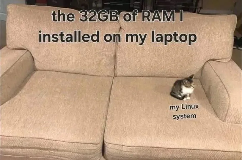 Caption: "the 32GB of RAM I installed in my laptop my Linux system"