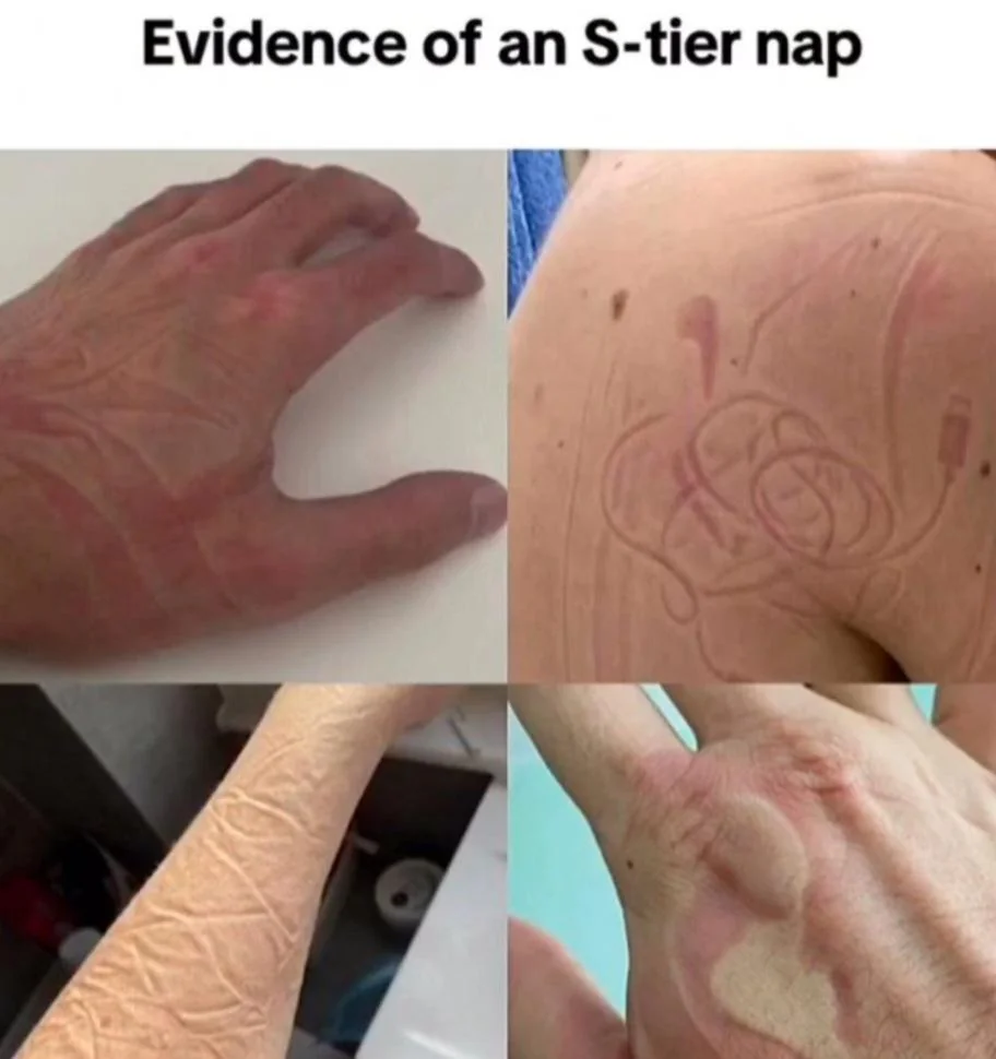 Caption: "Evidence of an S-tier nap"