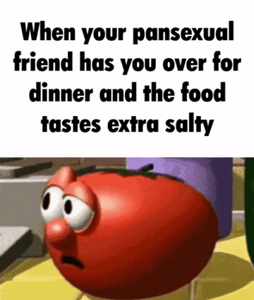 Caption: "When your pansexual friend has you over for dinner and the food tastes extra salty"