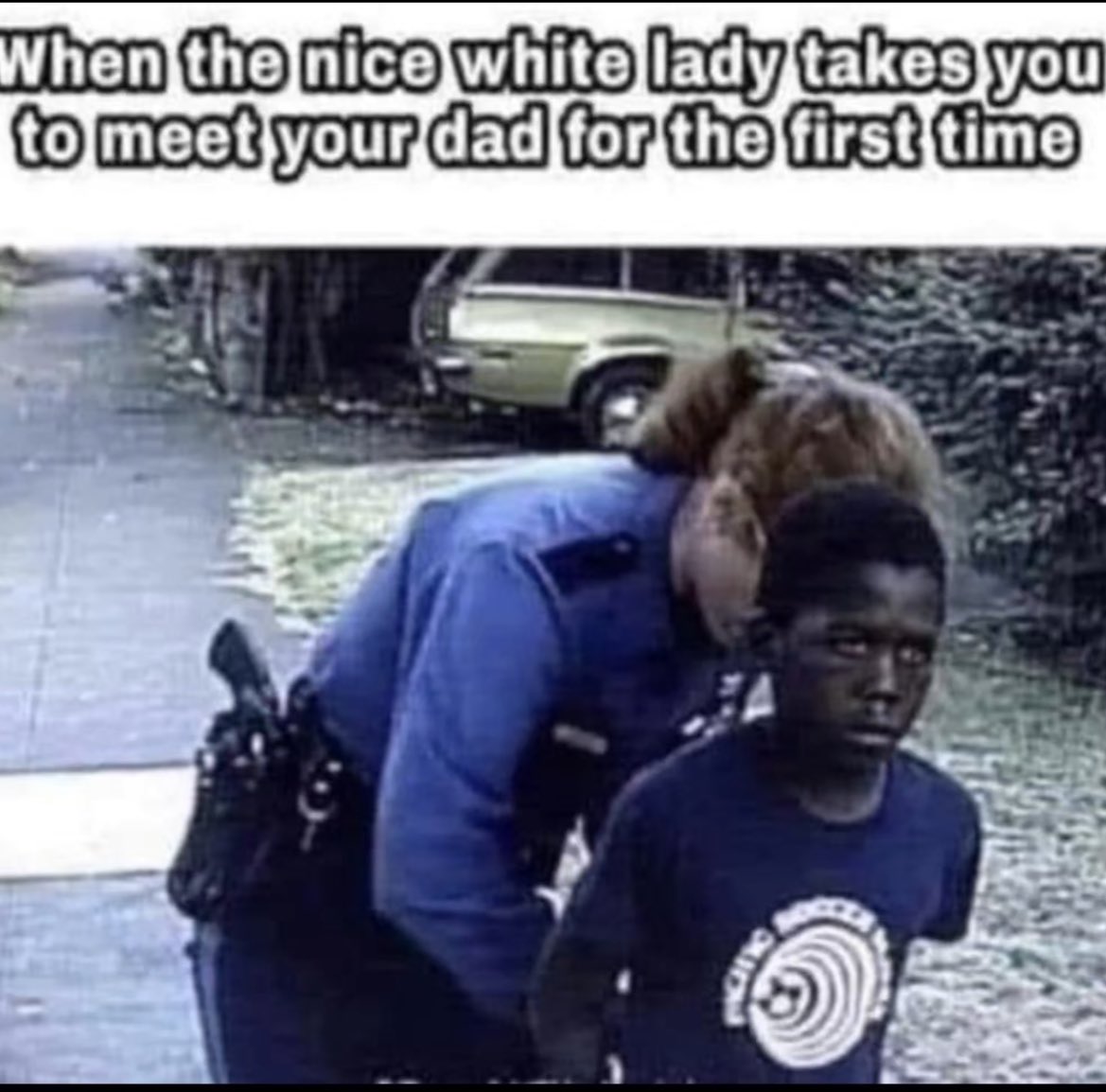 Caption: "When the nice white lady takes you to meet your dad for the first time"