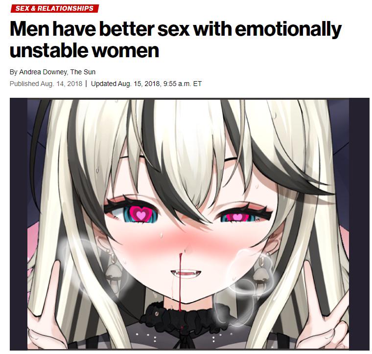 Caption: "Men have better sex with emotionally unstable women"