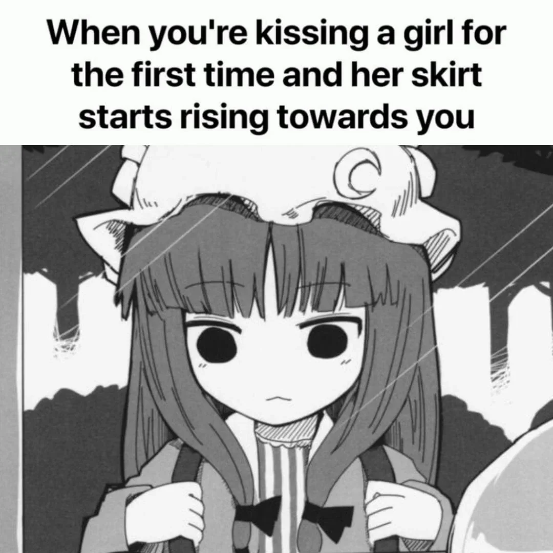 Caption: "When you're kissing a girl for the first time and her skirt starts rising towards you"