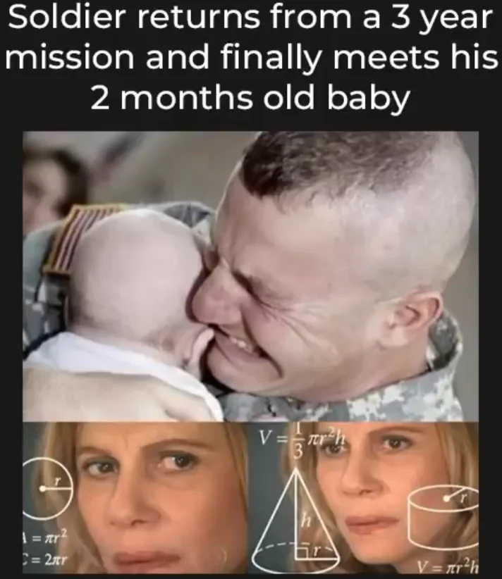 Caption: "Soldier returns from a 3 year mission and finally meets his 2 months old baby"