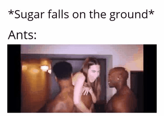 Caption: "*Sugar falls on the ground* Ants:"