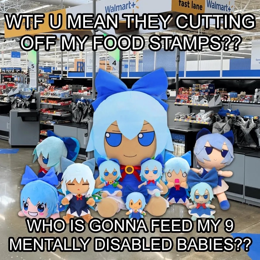 Caption: "WTF U mean they cutting off my food stamps?? Who is gonna feed my 9 mentally disabled babies??"