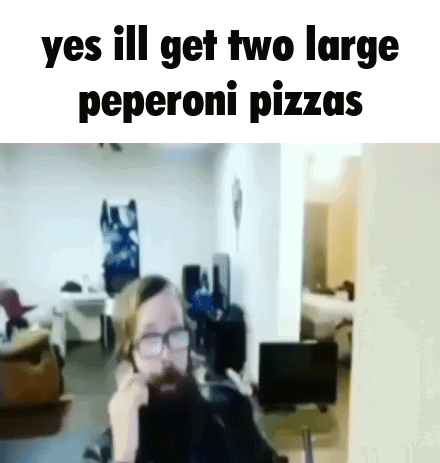 Caption: "Yes I'll get two large pepperoni pizzas"