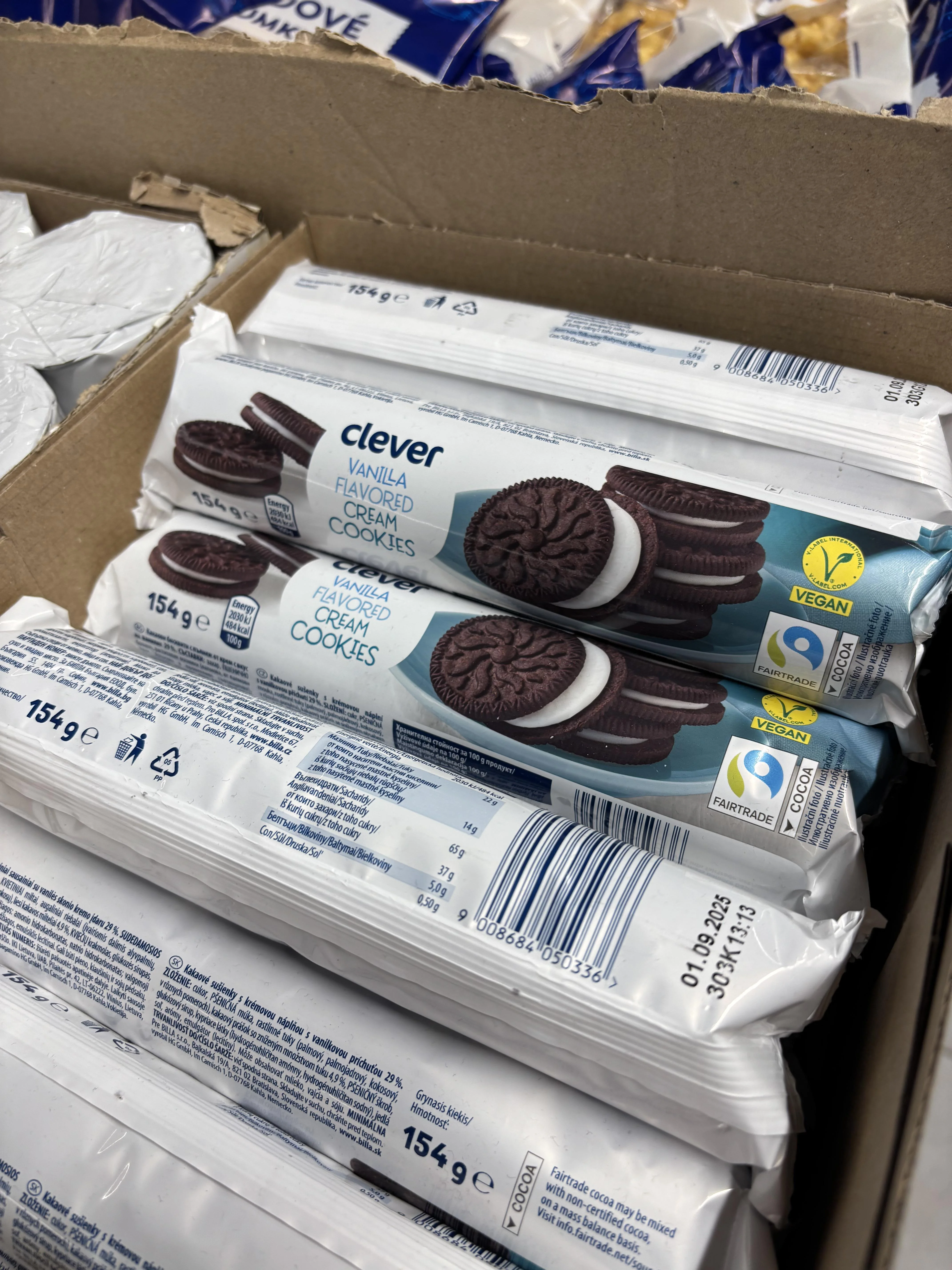 Caption: "clever Vanilla flavored cream cookies"