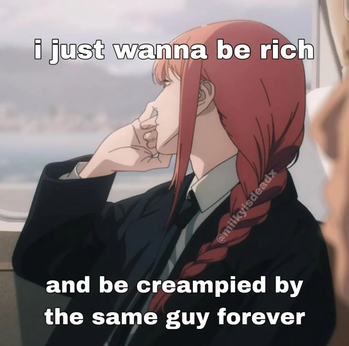 Caption: "i just wanna be rich and be creampied by the same guy forever"