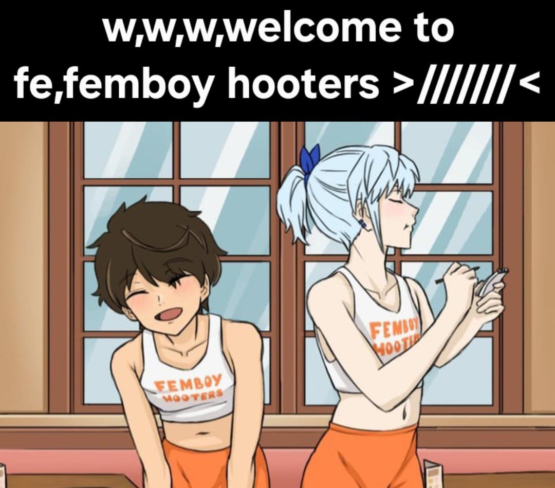 Apraksts: "w,w,w,welcome to fe,femboy hooters >///////<"