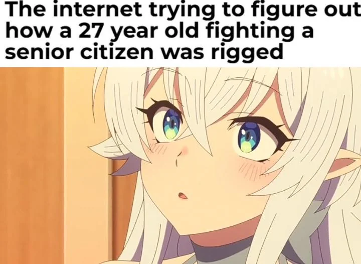 Apraksts: "The internet trying to figure out how a 27 year old fighting a senior citizen was rigged"