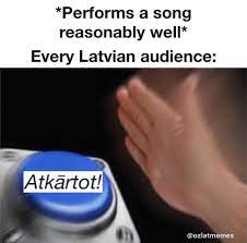 Apraksts: "*Performs a song reasonably well* Every Latvian audience: Atkārtot"