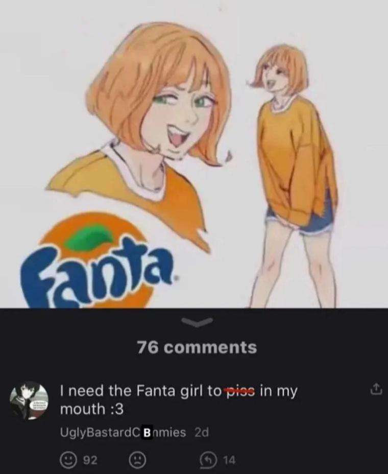 Apraksts: "I need the Fanta girl to piss in my mouth :3"