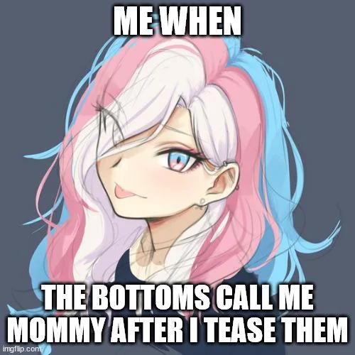 Apraksts: "Me when the bottoms call me mommy after I tease them"