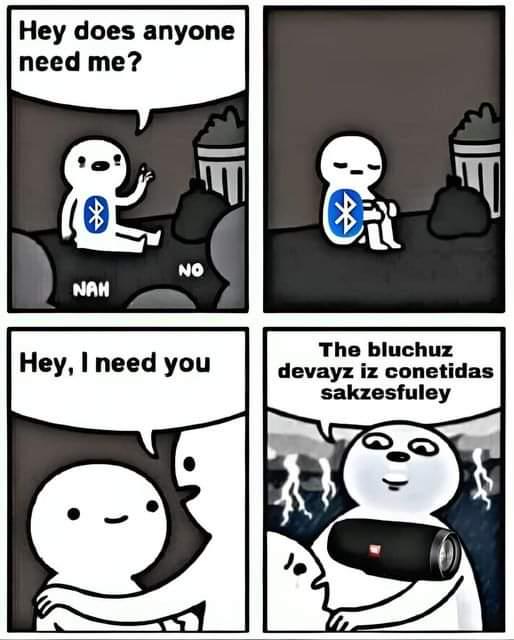 Apraksts: "Hey does anyone need me? Hey, I need you - The bluchuz devayz iz conetidas sakzesfuley"