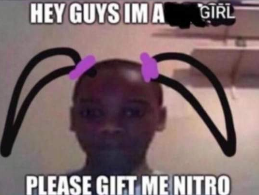 Apraksts: "Hey guys I'm a girl please gift me Nitro"