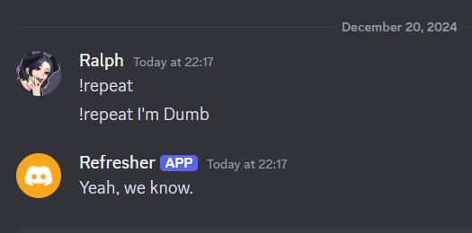 Apraksts: "!repeat *no response* !repeat I'm Dumb Yeah, we know."
