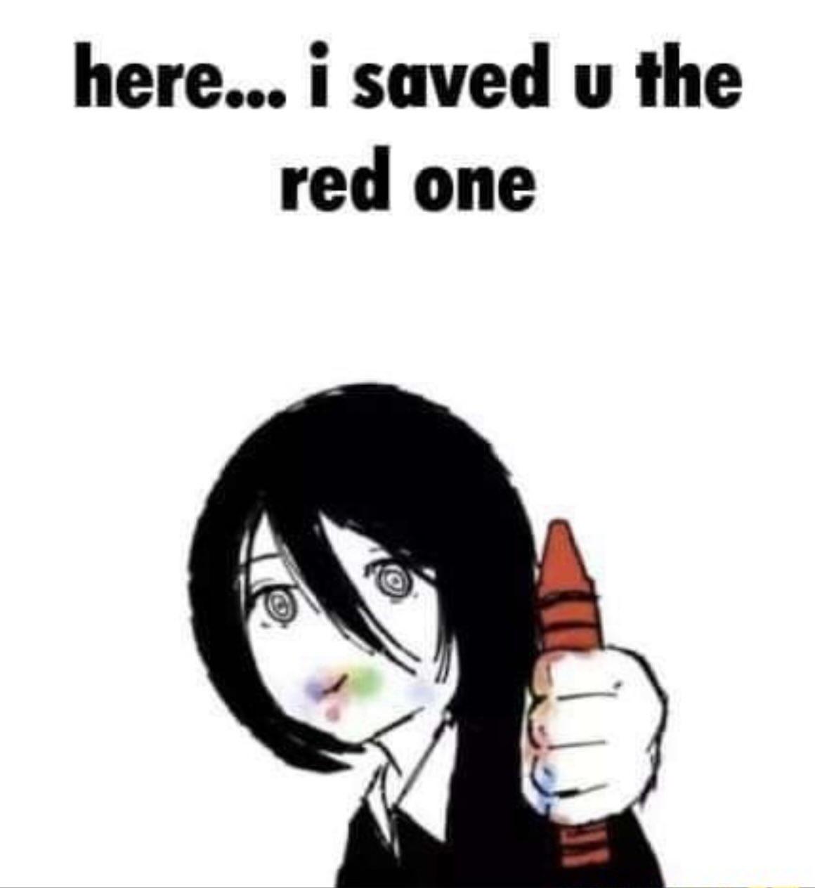Apraksts: "here... i saved u the red one"